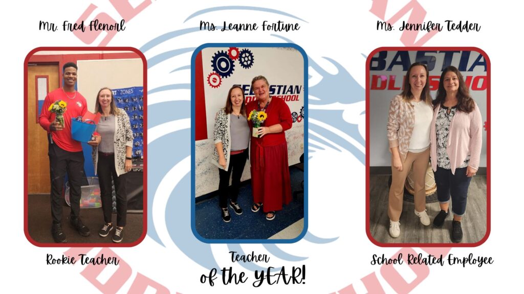 We are proud to announce our Teacher of the Year, Rookie Teacher of the Year, and School-Related Employee of the Year! These outstanding individuals represent the dedication, passion, and excellence that make Sebastian Middle School such a special place to learn and grow.